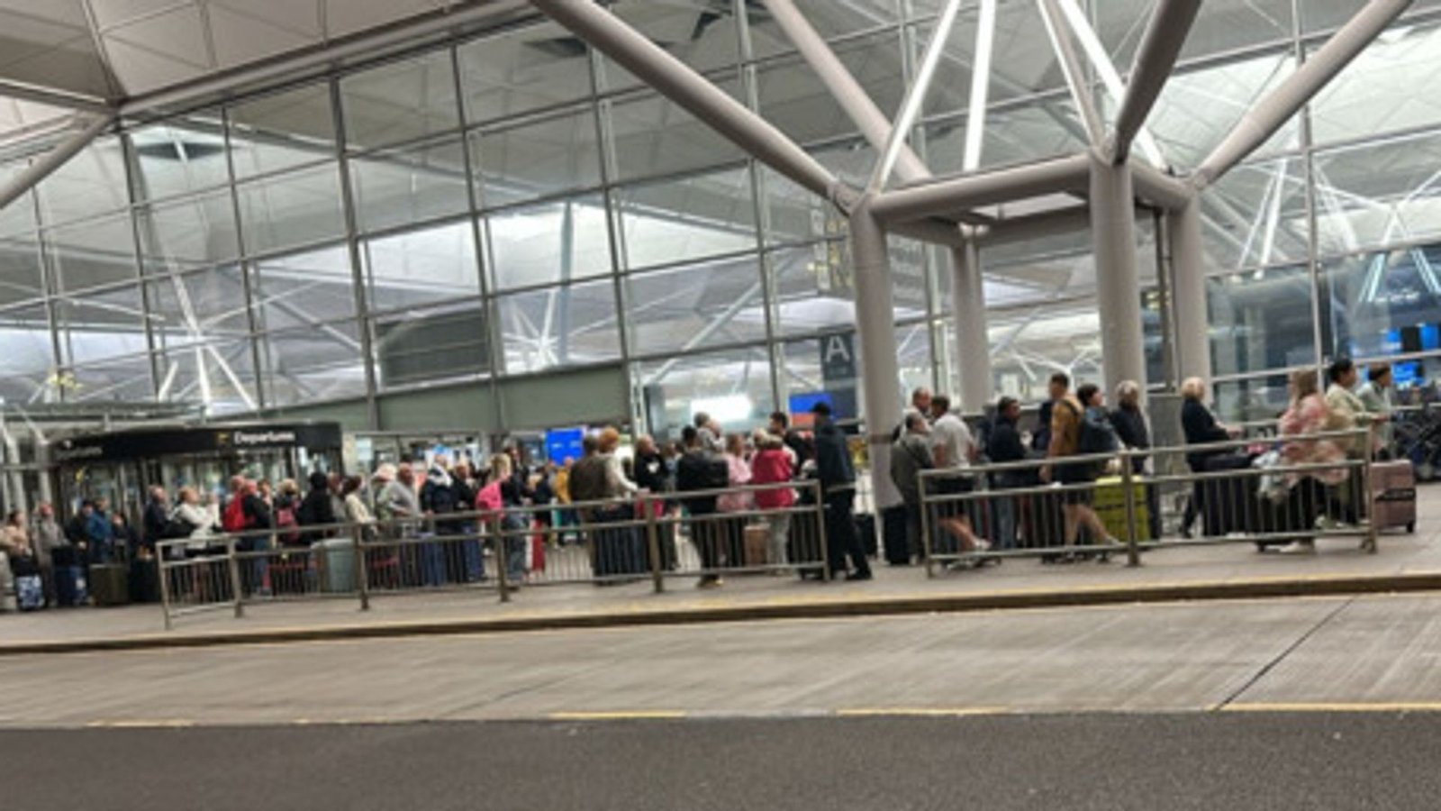 Queues snaking around the outside of the main terminal building could be seen in footage filmed at the Essex airport this morning.The airport’s website showed numerous flights were affected, with some passengers taking off four hours later than scheduled. Arrivals were not impacted.More UK news:Hospital accused of ‘cover up’Sweeping migration forms revealed