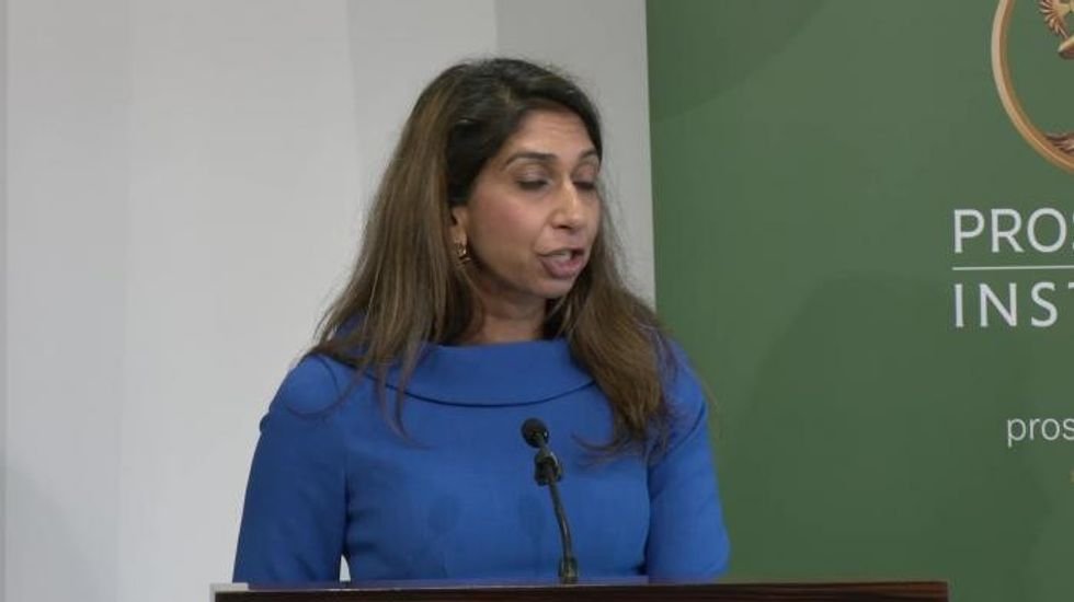 Suella Braverman welcomed the new Home Secretary as she joined forces with Reform UK to set out her plan for Britain to leave the European Convention on Human Rights in a bid to tackle the migrant crisis.The former Home Secretary, who served in the position for the Tories during two stints in 2022 and 2023, posted on social media that she was “looking forward to discussing my policy paper… on how to leave the ECHR” at the Prosperity Institute on Thursday.”It’s the first detailed plan which busts myths and sets out clear proposals on Northern Ireland, the Human Rights Act, the EU, and how our civil liberties will be protected after we leave,” Ms Braverman said in her post on X.The Fareham and Waterlooville MP said she was pleased to be joined by Deputy Reform UK leader Richard Tice and Lord David Frost for the discussion.”The new Home Secretary and Attorney General are, of course, very welcome to join us,” Ms Braverman said.Mr Tice added in his own post: “Don’t miss it”.Before speaking to a crowd on Thursday morning, a video was played of Ms Braverman explaining her plans.She declared the UK must “trigger (the) article 58 exit clause”.Suella Braverman outlining her plan to leave the ECHR | PROSPERITY INSTITUTE”Next we prepare our laws to take back control,” Ms Braverman added.”We repeal the Human Rights Act and we reform judicial review to curb activist judges.”The former Home Secretary said it was important to amend legislation throughout the United Kingdom to apply laws “consistently”.In addressing the crowd, Ms Braverman declared Britain was “at a moment of crisis”.Richard Tice supported Suella Braverman’s call for the UK to leave the ECHR | PROSPERITY INSTITUTE”A crisis of security, a crisis of trust,” she added.”We’ve lost control of our borders, we have a justice system that in too many cases is distorted and unfair.”Ms Braverman said British people had “lost confidence in our law enforcement”.”Our national sovereignty has been eroded and the British people are taking to our streets in anger,” she said.Ms Braverman said it was time for “serious action” which the Government has failed to act upon.She addressed her call for Britain to leave the ECHR, saying she had received backlash from within her party for being the first Conservative Cabinet minister to make the call.”I have thought long and hard about it, indeed I am passionate about it,” Ms Braverman said.Having served two stints as Home Secretary, she said it was also during her time as Attorney-General and working as a barrister defending the Home Office that informed her opinion.”(I) regularly see our human rights laws weaponised against the state by illegal migrants,” she said.She said she was even criticised by then-Prime Minister Rishi Sunak who “abjectly refused to take this vital step when we had the majority”.Supporting the call, Mr Tice told the crowd that the EHCR was also impacting on Britain.”I’m a numbers guy … it is not a coincidence that ever since the 1998 Human Rights Act, our GDP growth has declined, our human rights lawyers have grown a whole new industry of lawfare, our productivity is collapsing our very own ears,” he said.