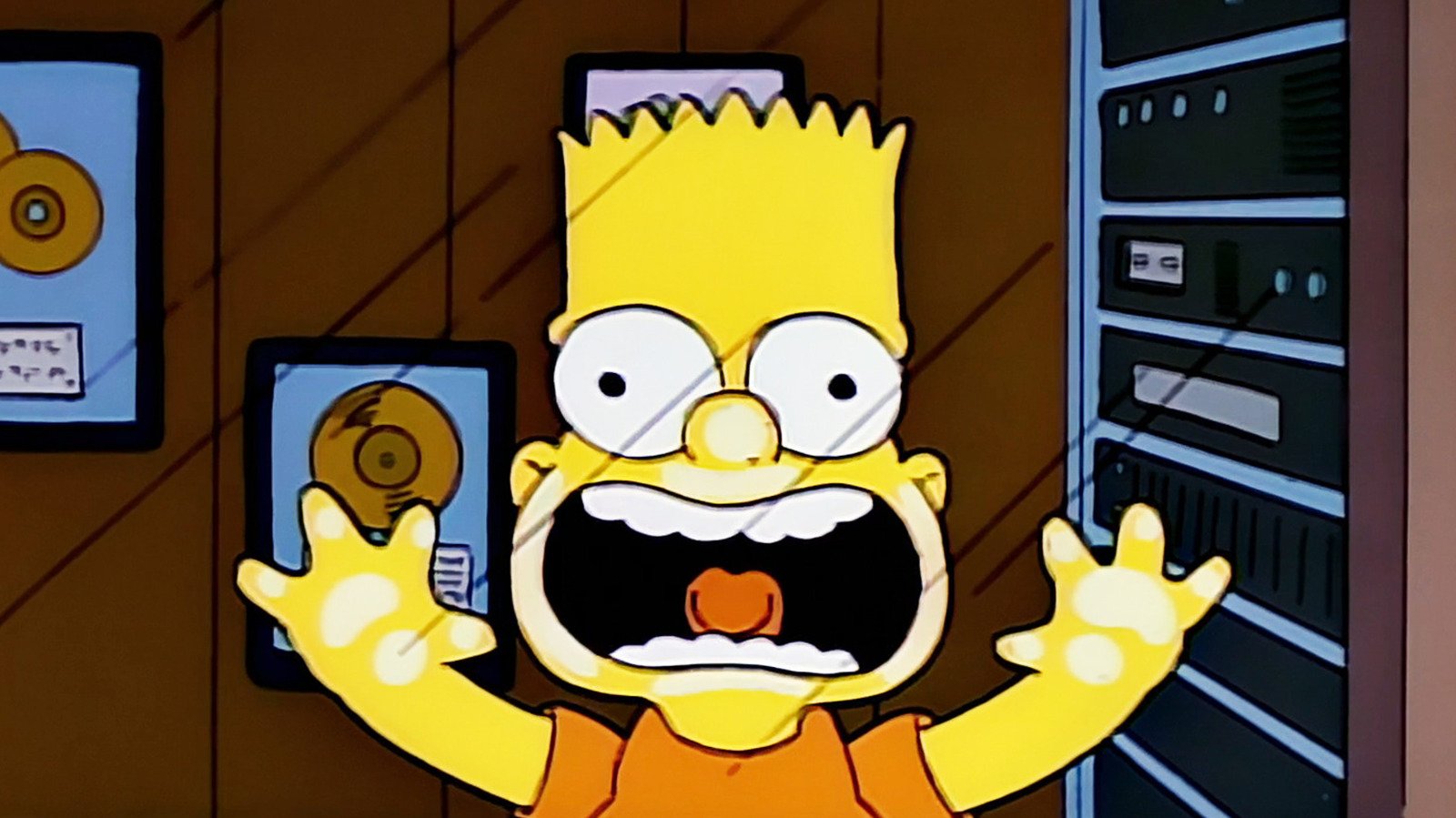 When “The Simpsons” did finally air on December 17, 1989, it didn’t yet have a full title sequence. Instead, “Simpsons Roasting on an Open Fire” opened with a title card announcing it as a Christmas Special. When the second episode was broadcast however, viewers were introduced to the theme song and title sequence that would become part of the cultural wallpaper of the ’90s and beyond. That sequence contained all sorts of blink-and-you’ll-miss-it jokes, references, cameos, and of course, the great couch gags. What even some of the most dedicated fans might not have realized, however, is that Groening’s own voice also forms part of this now legendary title sequence.