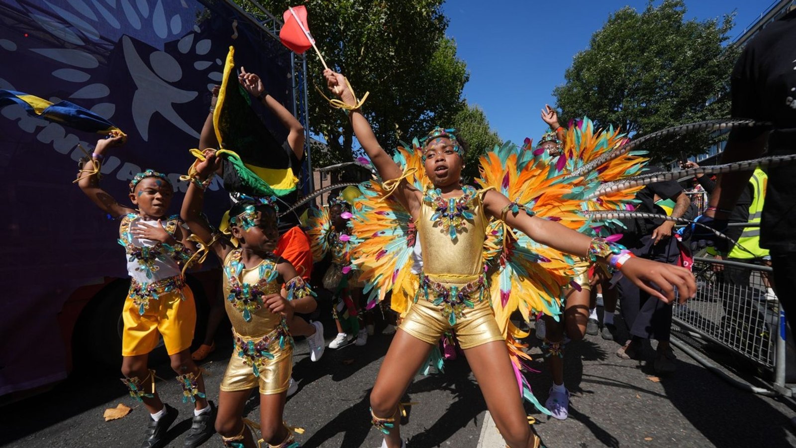 The Mayor of Kensington and Chelsea, Tom Bennett, welcomed “friends” from across the Caribbean and said: “It’s one of the greatest street parties in the world…celebrating today Caribbean culture – from dancing, music, costumes but also everything the Caribbean community has done in this borough and country.”During the parade, there was fast-paced drumming along with flutes, brass instruments, steel drums, dancers and costumes including giant colourful wings.Flags from Venezuela to Trinidad were draped across the shoulders of people who danced and cheered down the road.A mixture of adults and children wearing jewels, glittery wings, belts and headdresses danced down the street, followed by floats.