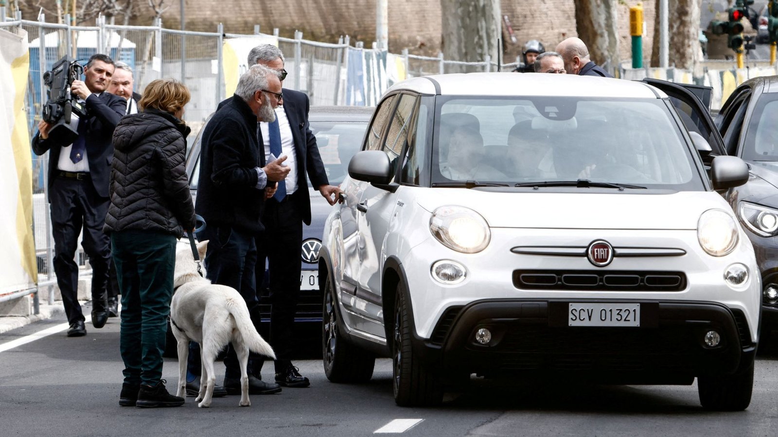 Shortly before entering the Vatican, his car appeared to pull over and there was an interaction between the pontiff’s security and two people, one of whom was with a dog, at the side of the road.The Pope then appeared to greet the couple through the open car door.Pope speaks in public for first time in five weeks – live