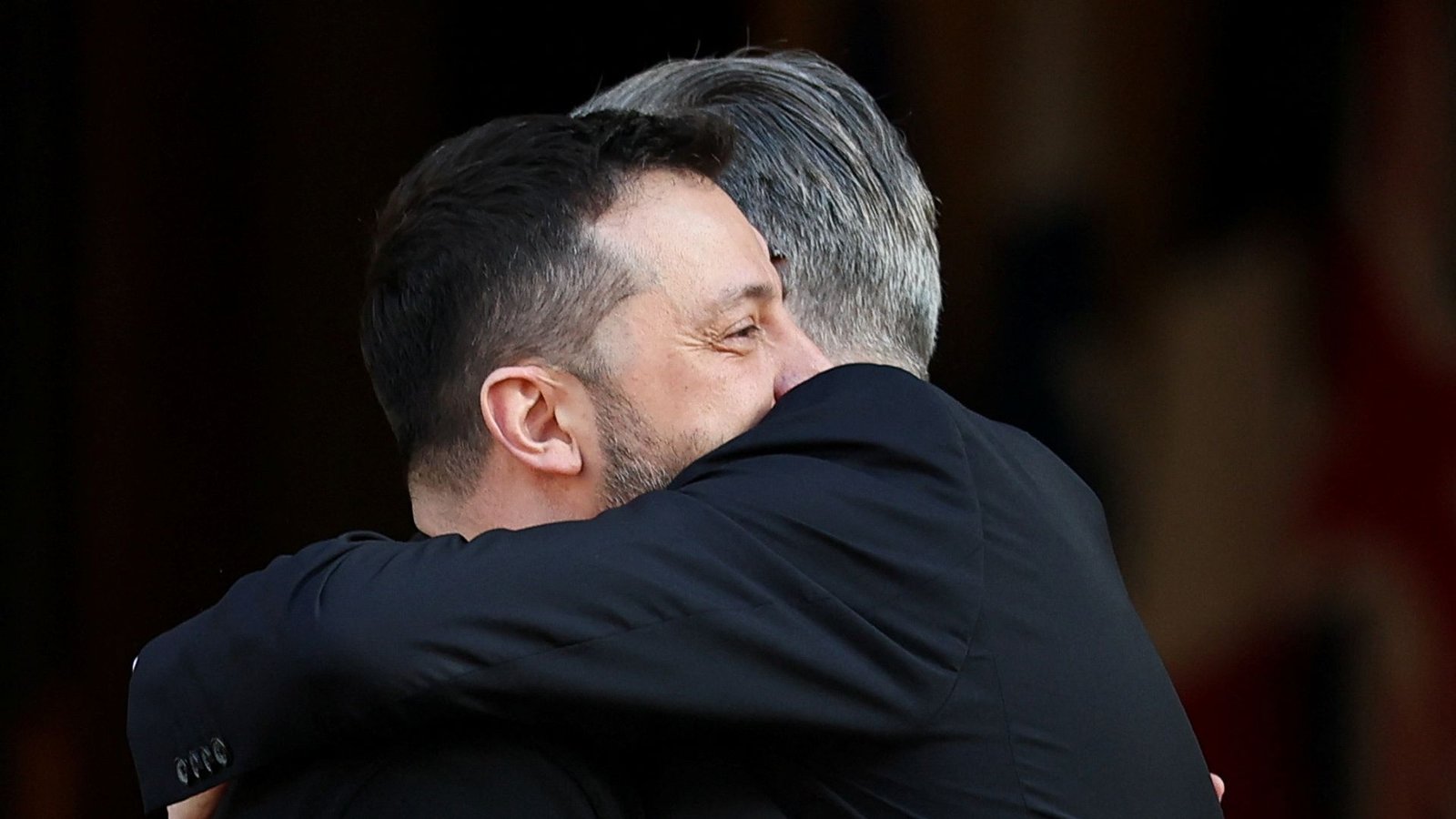 Sir Keir Starmer embraced Volodymyr Zelenskyy as he arrived in London for the summit on Ukraine’s future. Pic: PA